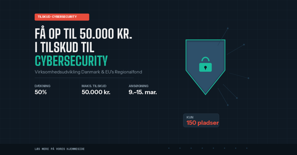 En ny tilskudspulje giver små og mellemstore virksomheder mulighed for at få dækket halvdelen af udgiften til professionel cybersecurity-rådgivning. Puljen åbner den 9. marts — og med kun 150 pladser gælder det om at være klar. Cybertrusler rammer ikke kun de store virksomheder. Mange opdager først sikkerhedshullerne, når skaden allerede er sket. Nu åbner Virksomhedsudvikling